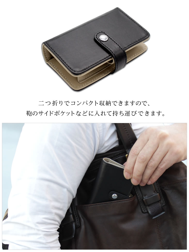 おでかけ前にゴチャゴチャしがちな持ち物が二つ折りのコンパクトサイズでシンプルにまとまりますので、 カバンのサイドポケットなどに入れて気軽に携帯できます。