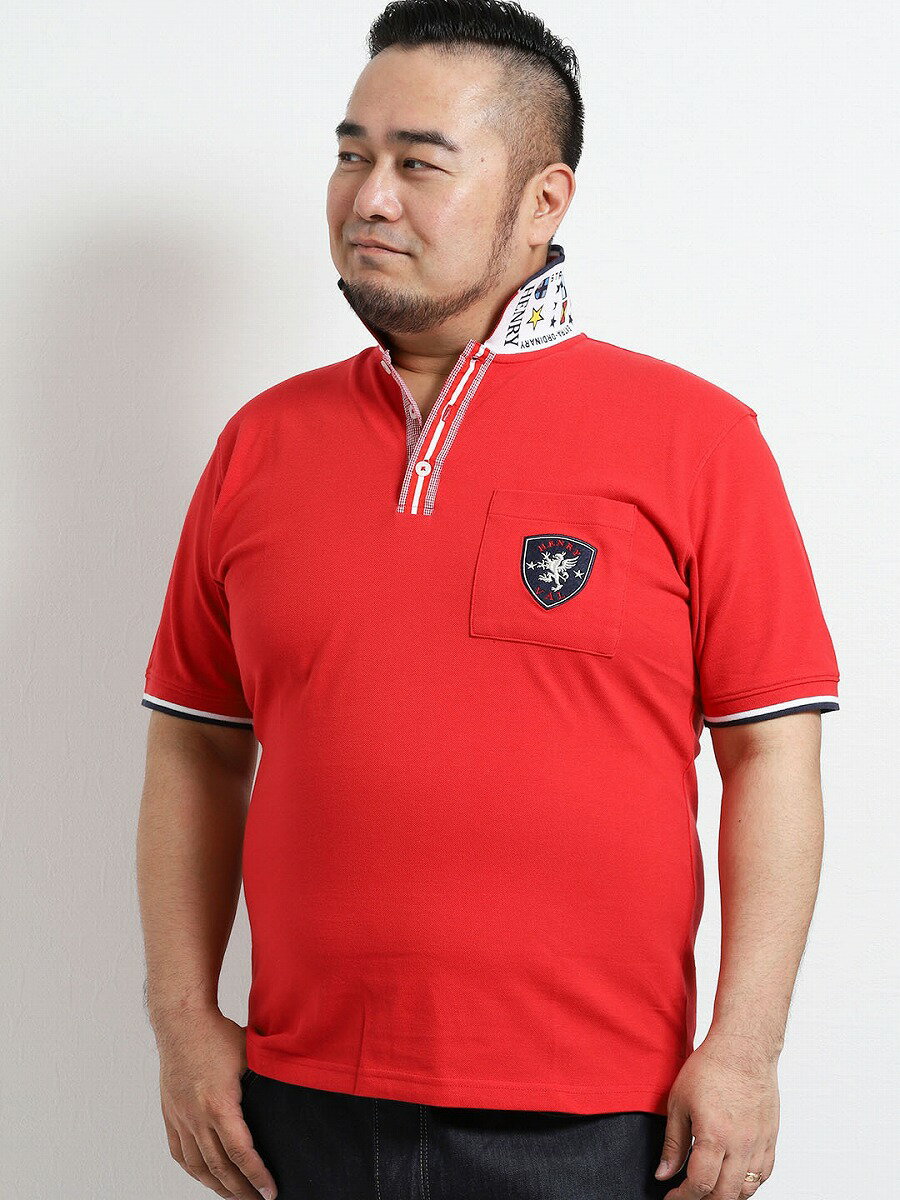 写真カラー上から (01)白(10)赤(75)紺素材;コットン65%ポリエステル35%シーズン:夏【大きいサイズ】ヘンリーバル/HENRY VAL カノコ衿裏プリント半袖ポロ暑い夏は1枚でお洒落が完成するポロシャツが大活躍。