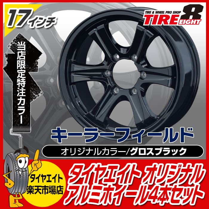 商品 KEELER FIELD キーラーフィールド 17インチ 4本セット 17×7.5J +23 6H/139 カラー/グロスブラック(当店限定特注色) 【付属品】エアーバルブ 【別売パーツ】センターキャップ 2,500円/1個 ※別売キャップページはこちら 《JWL、VIA規格適合品》 同サイズのSMCカラーもございます。
